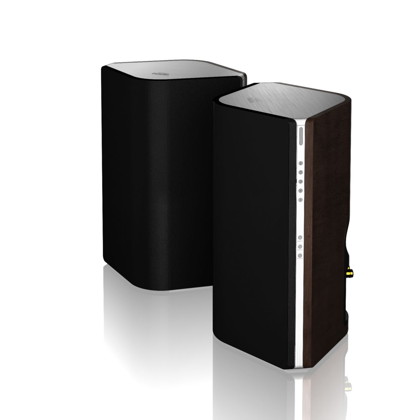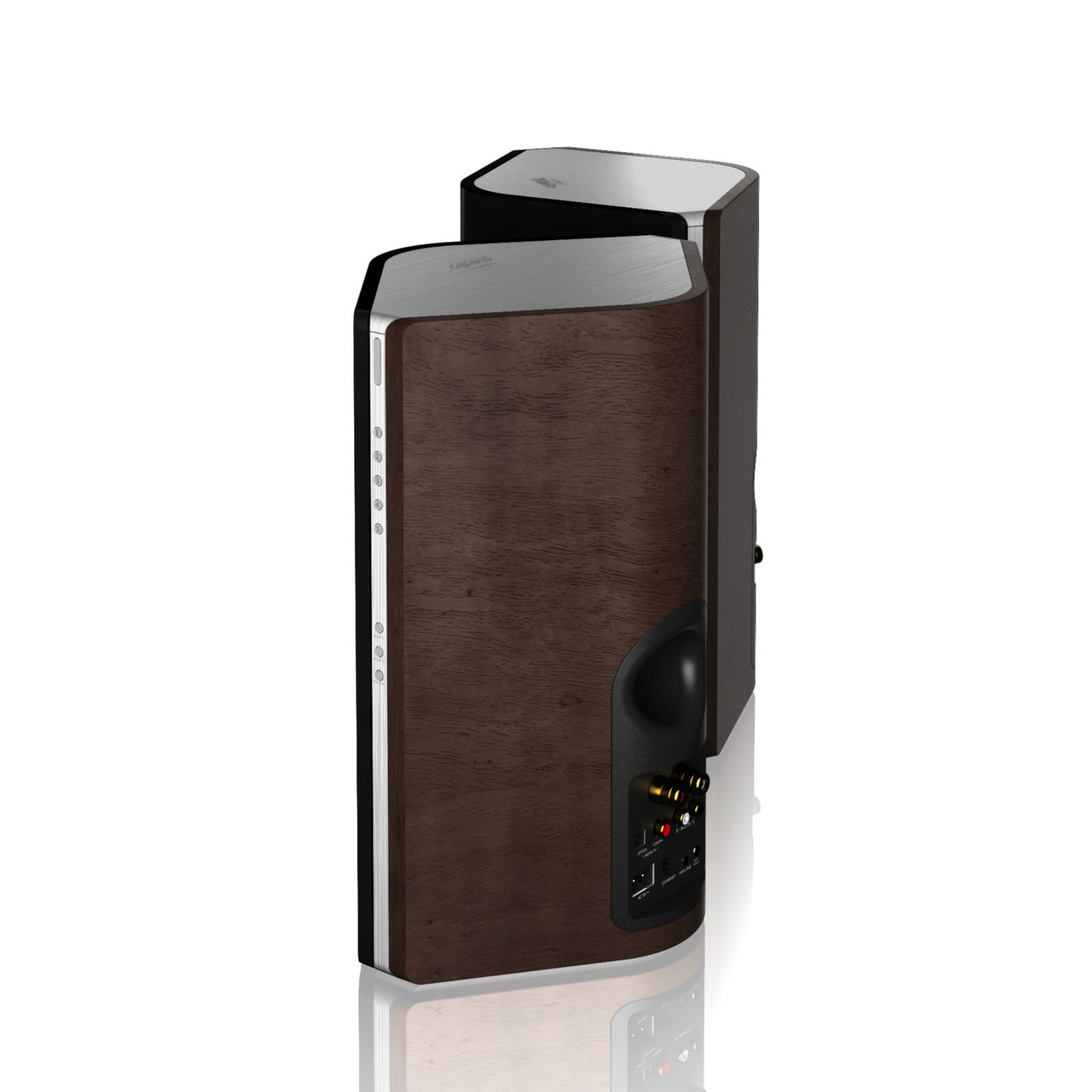 The speaker features specially angled professional grade Hi-Fi drivers, designed to produce the most extensive and immersive soundstage possible. The positioning of the drivers offers unparalleled, dynamic sound quality regardless of where you are in the room. The unique design also allows the speakers to fit unobtrusively into the interior design.