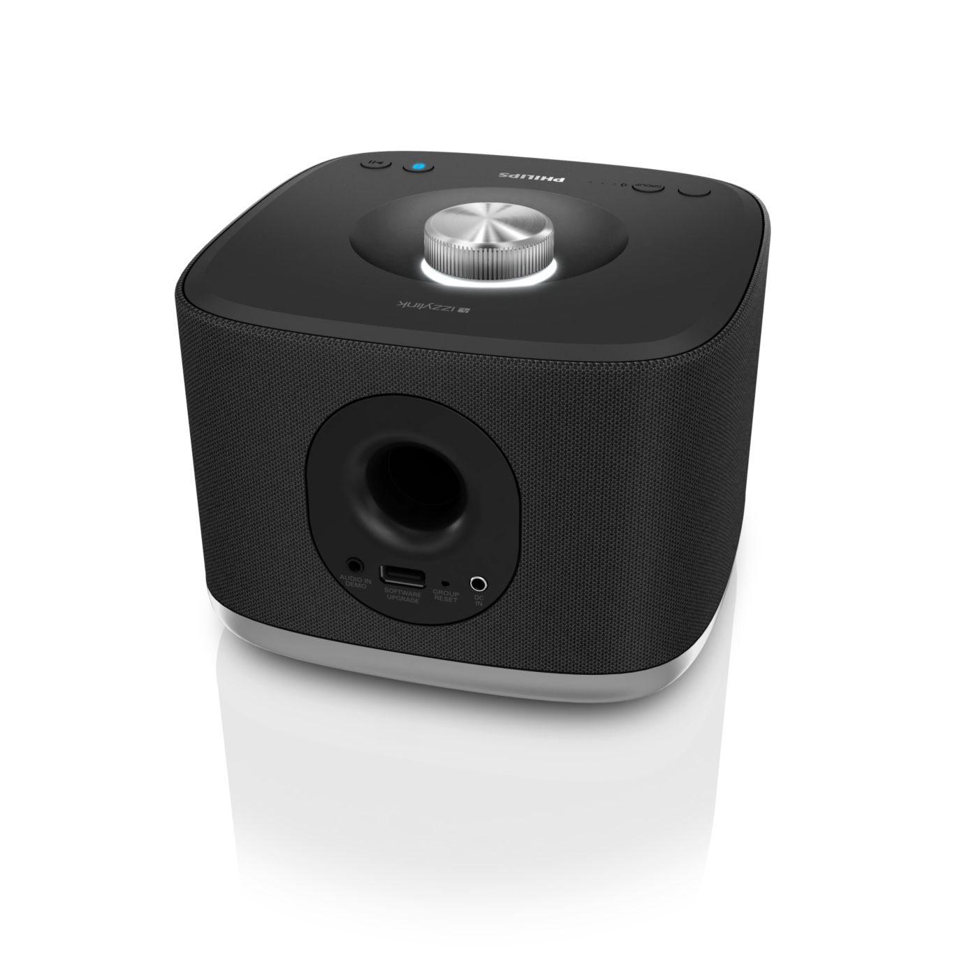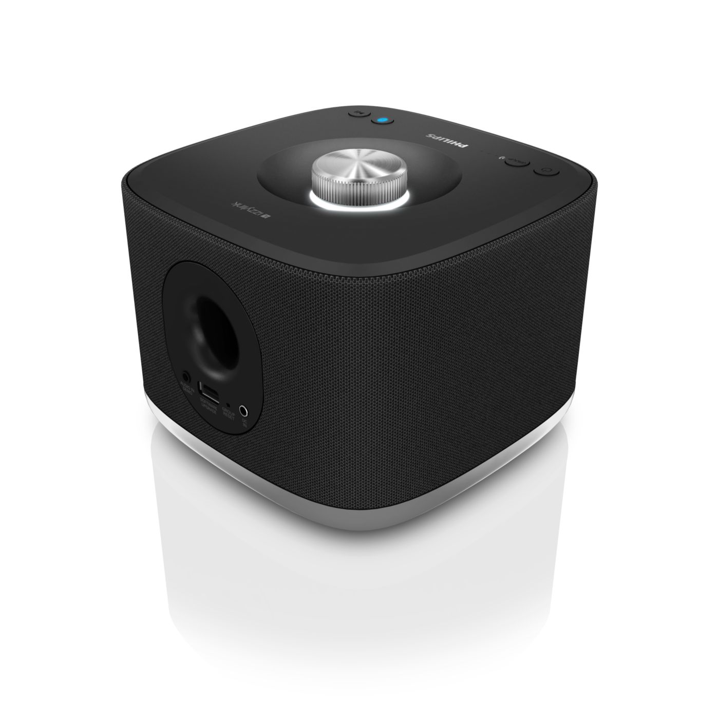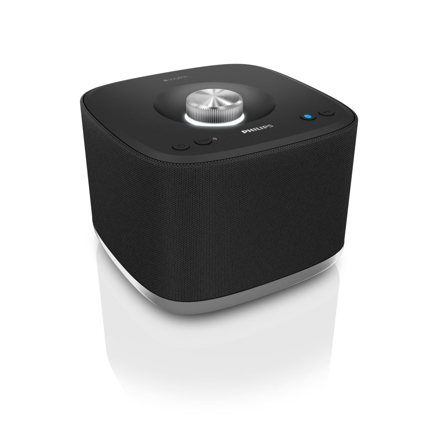Philips izzy wireless multi-room speaker plays music wirelessly via Bluetooth. With a tap of button, up to 5 izzy speakers play music in every room at the same time effortlessly. Easy setup, no router, password or apps.