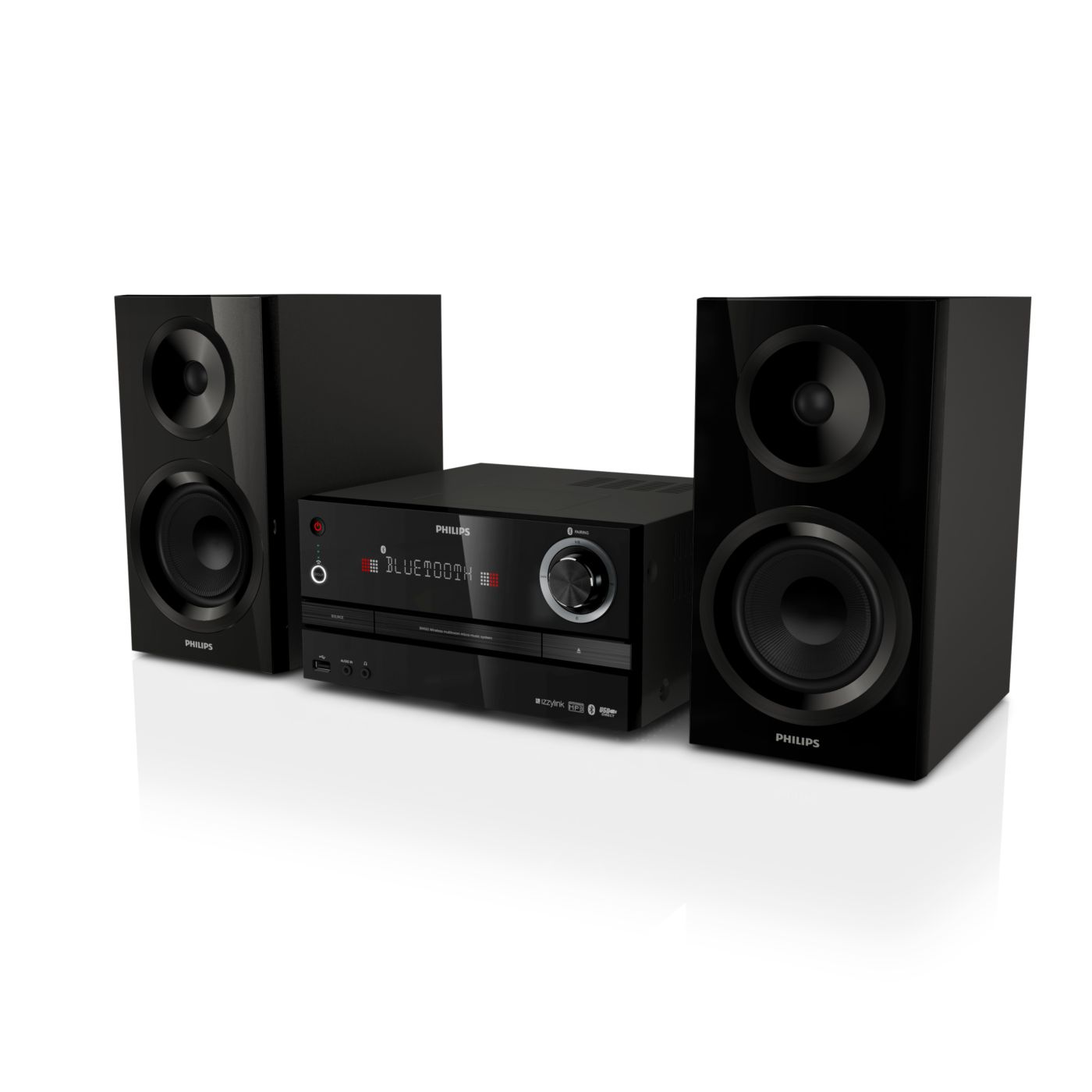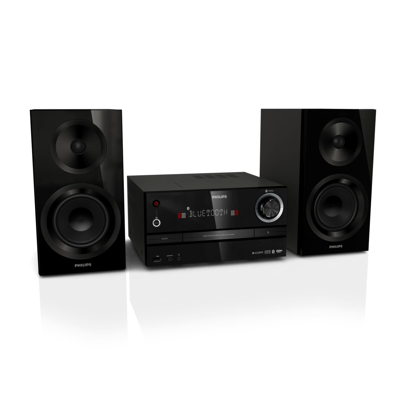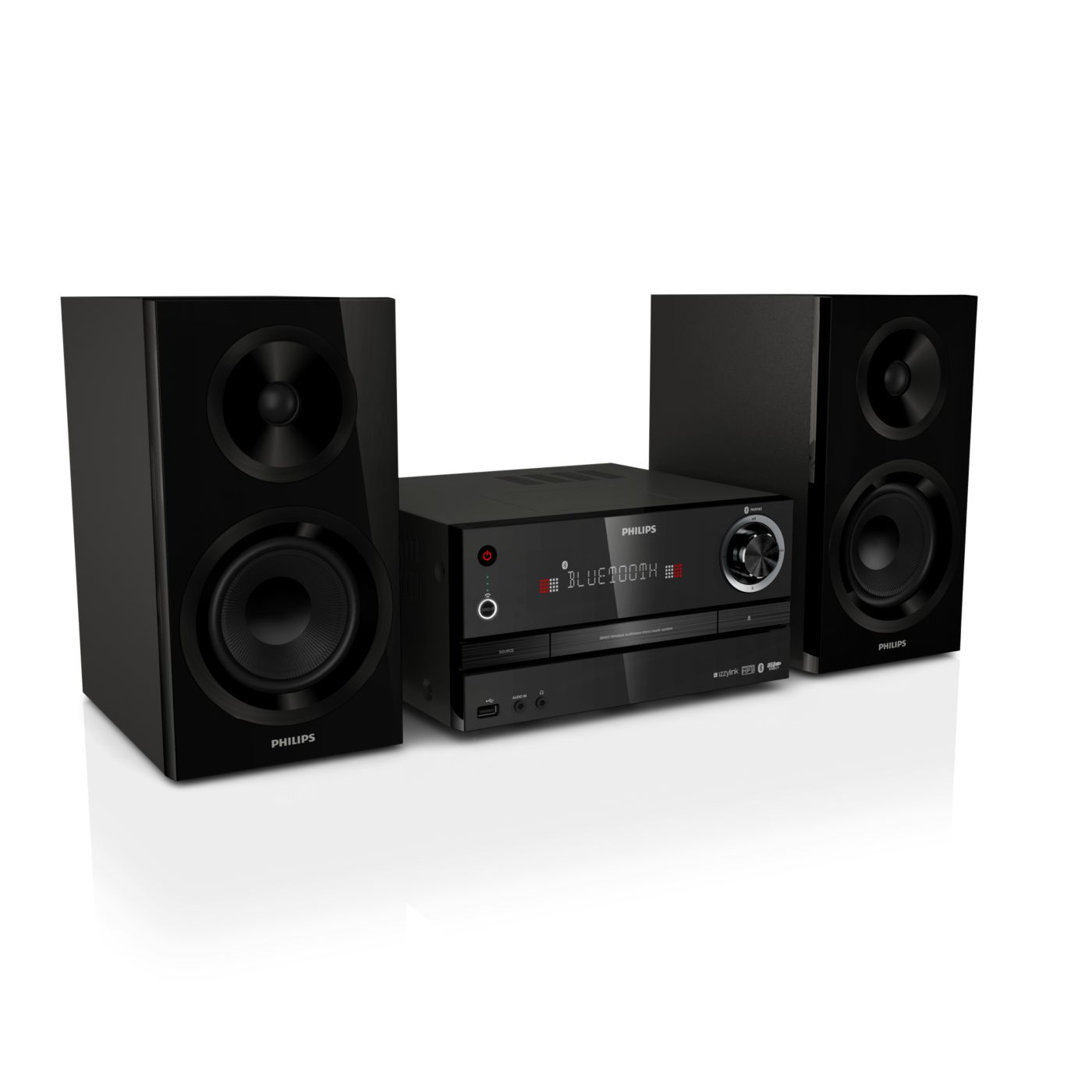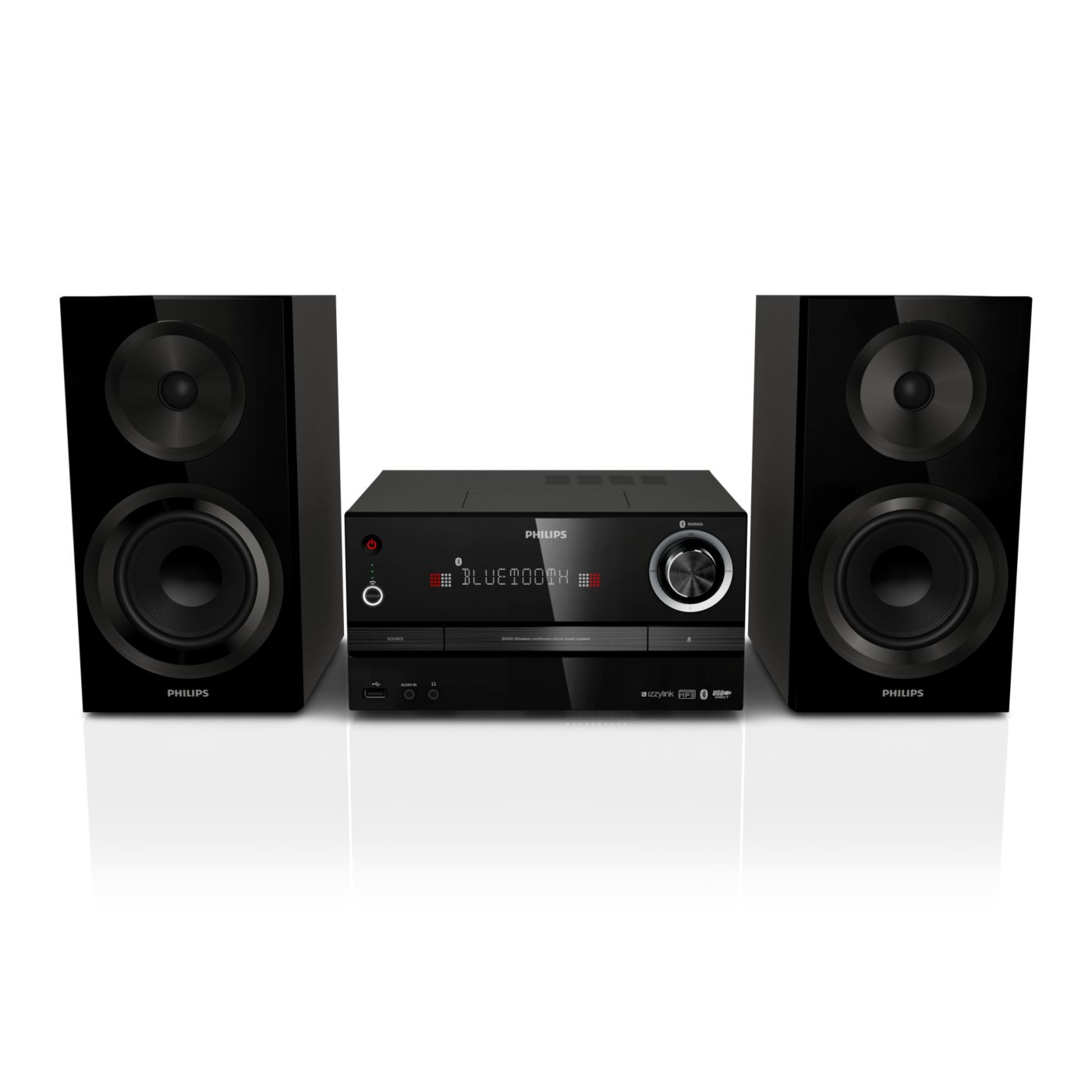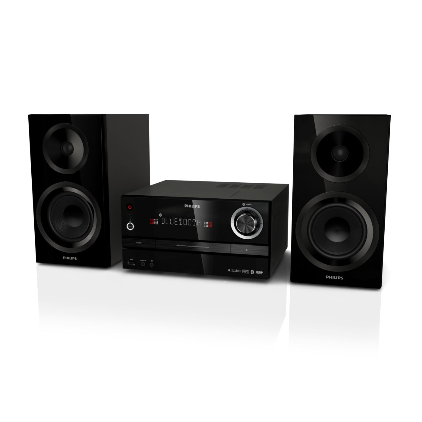 The Philips izzy music system plays music via Bluetooth, CD/USB and FM. With the tap of a button, music from smartphones, CD/USB and radio stations will play simultaneously to any izzy speaker in any room. Easy setup with no router, password or app.