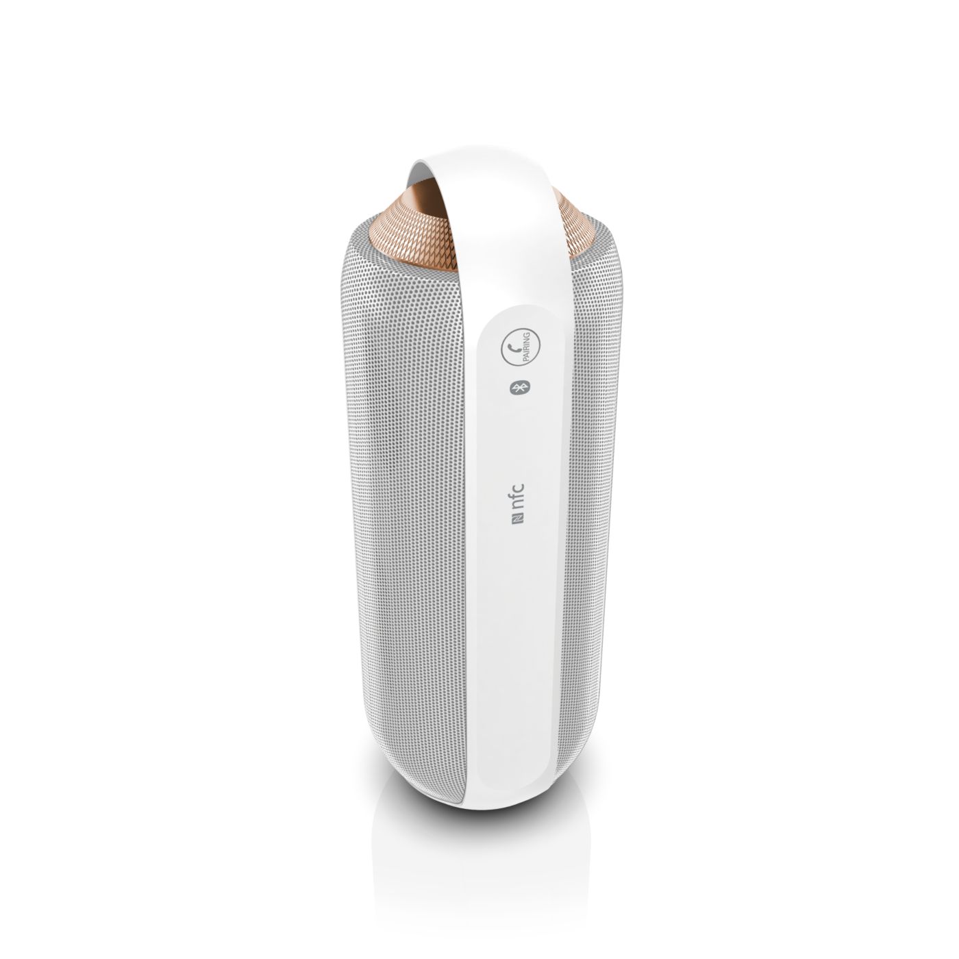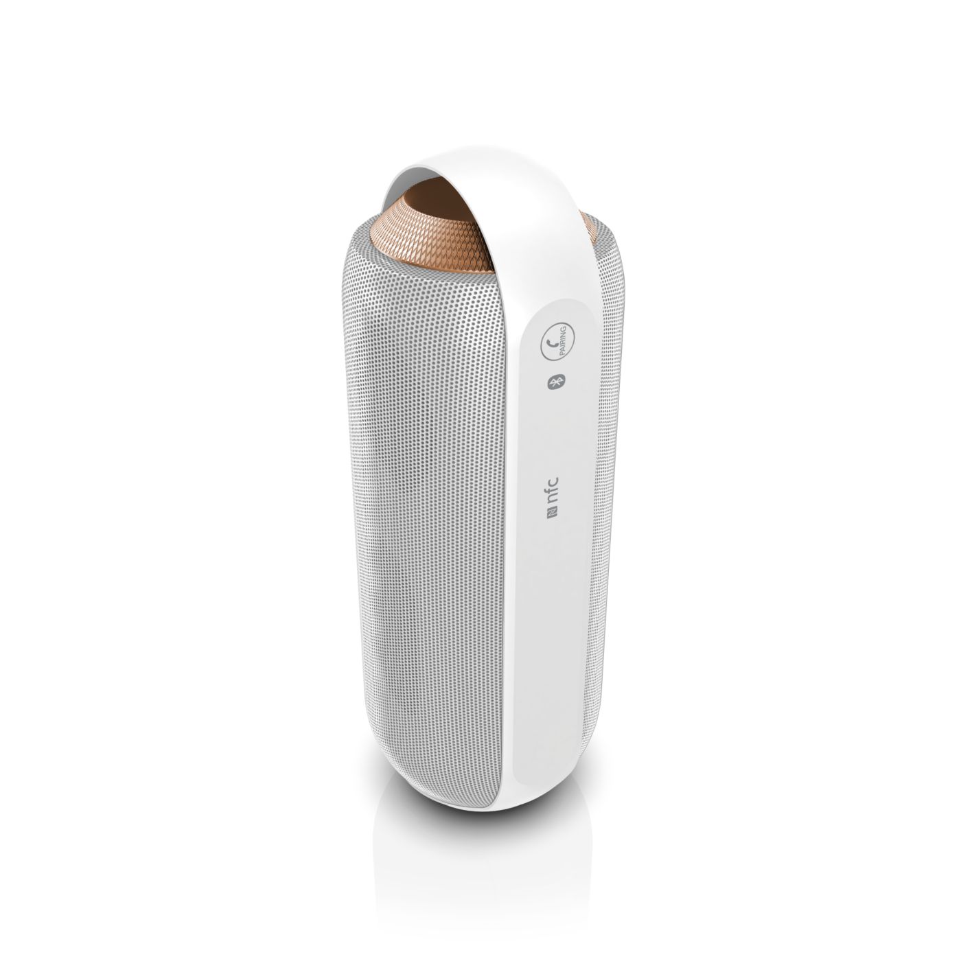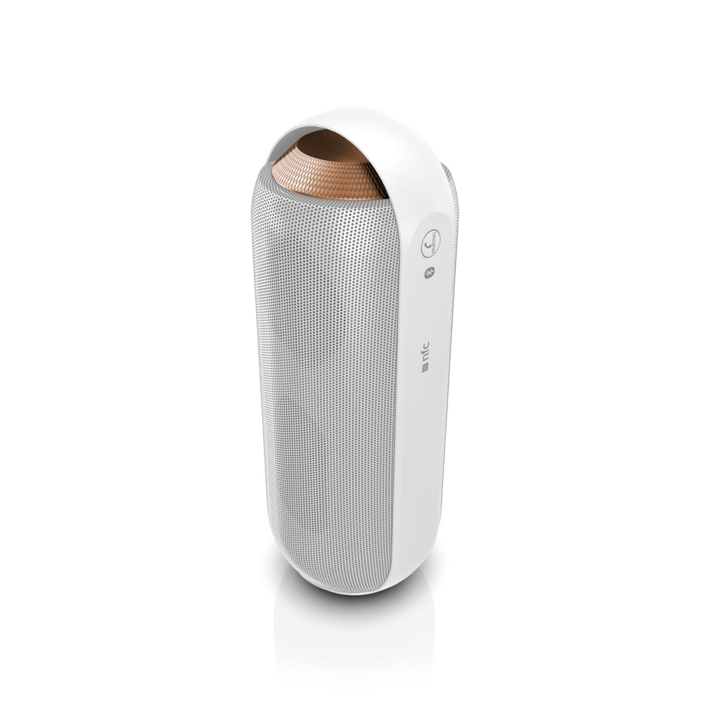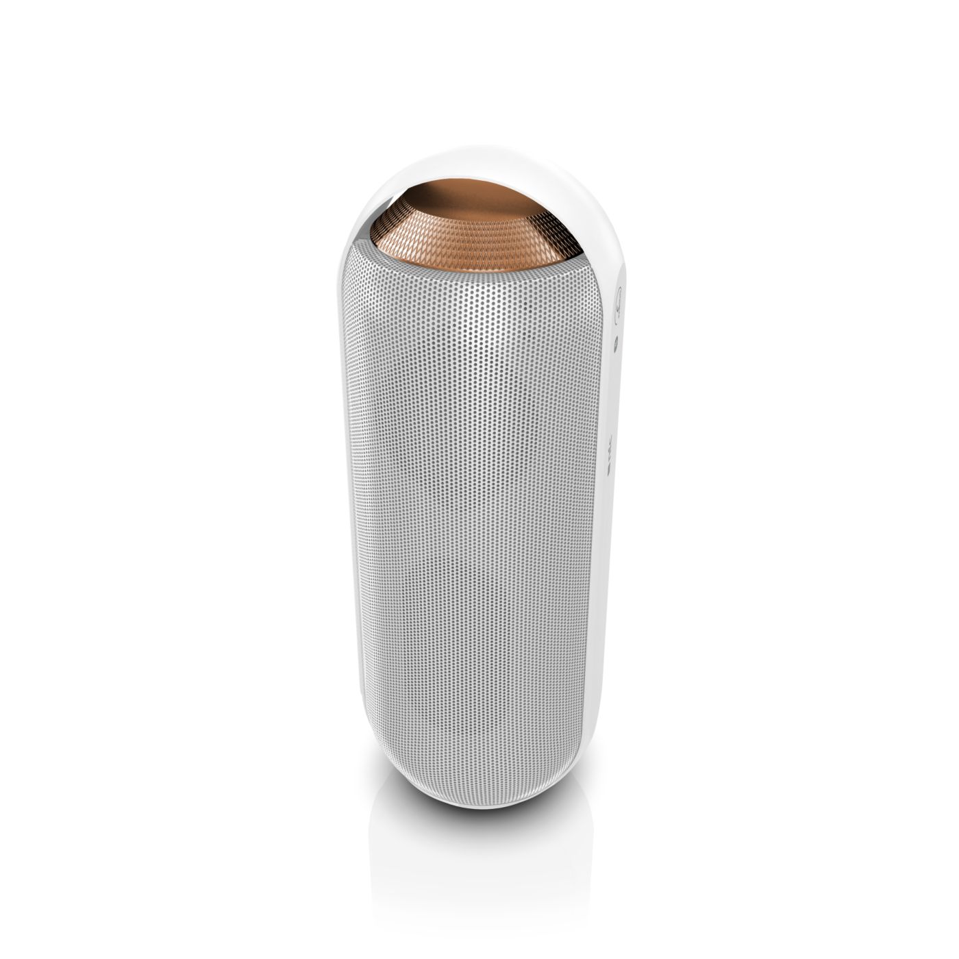 Twin 1.5" Neodymium speaker drivers deliver natural, clear and balanced sound while dual opposing passive radiators extend and boost bass. Front and back full-range speaker drivers create even 360-degree sound, offering the freedom to enjoy the same quality sound wherever the speaker is facing.