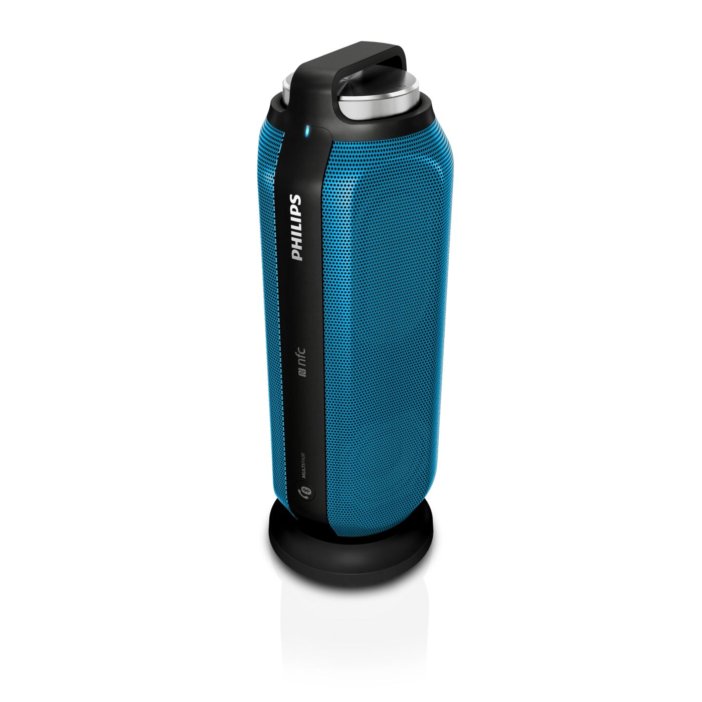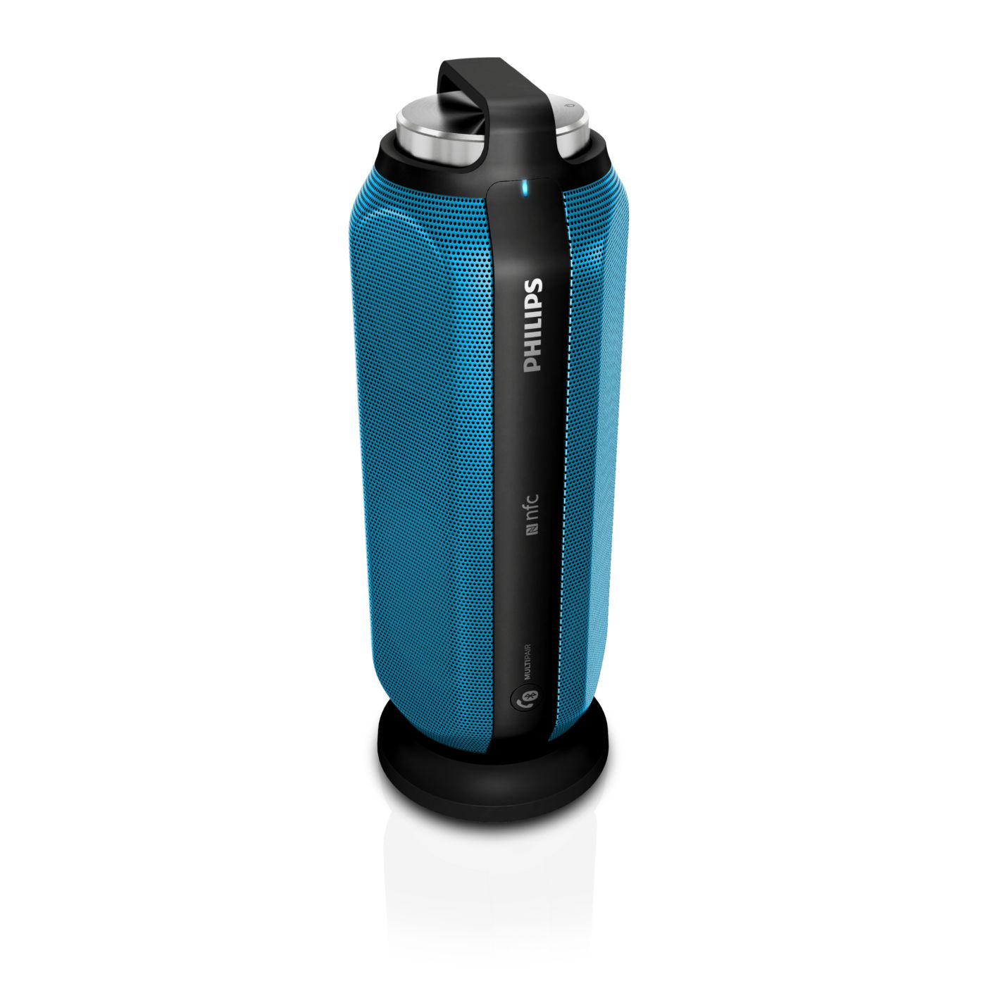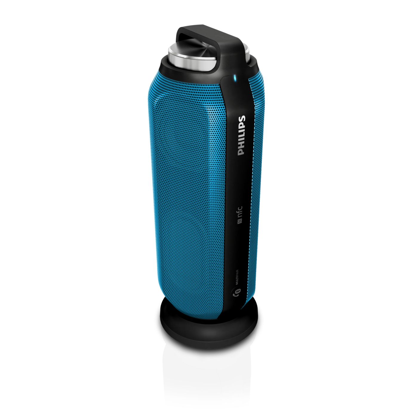 Twin 1.75" Neodymium speaker drivers deliver natural, clear and balanced sound while dual opposing passive radiators extend and boost bass. Front and back full-range speaker drivers create even 360-degree sound, offering the freedom to enjoy the same quality sound wherever the speaker is facing.