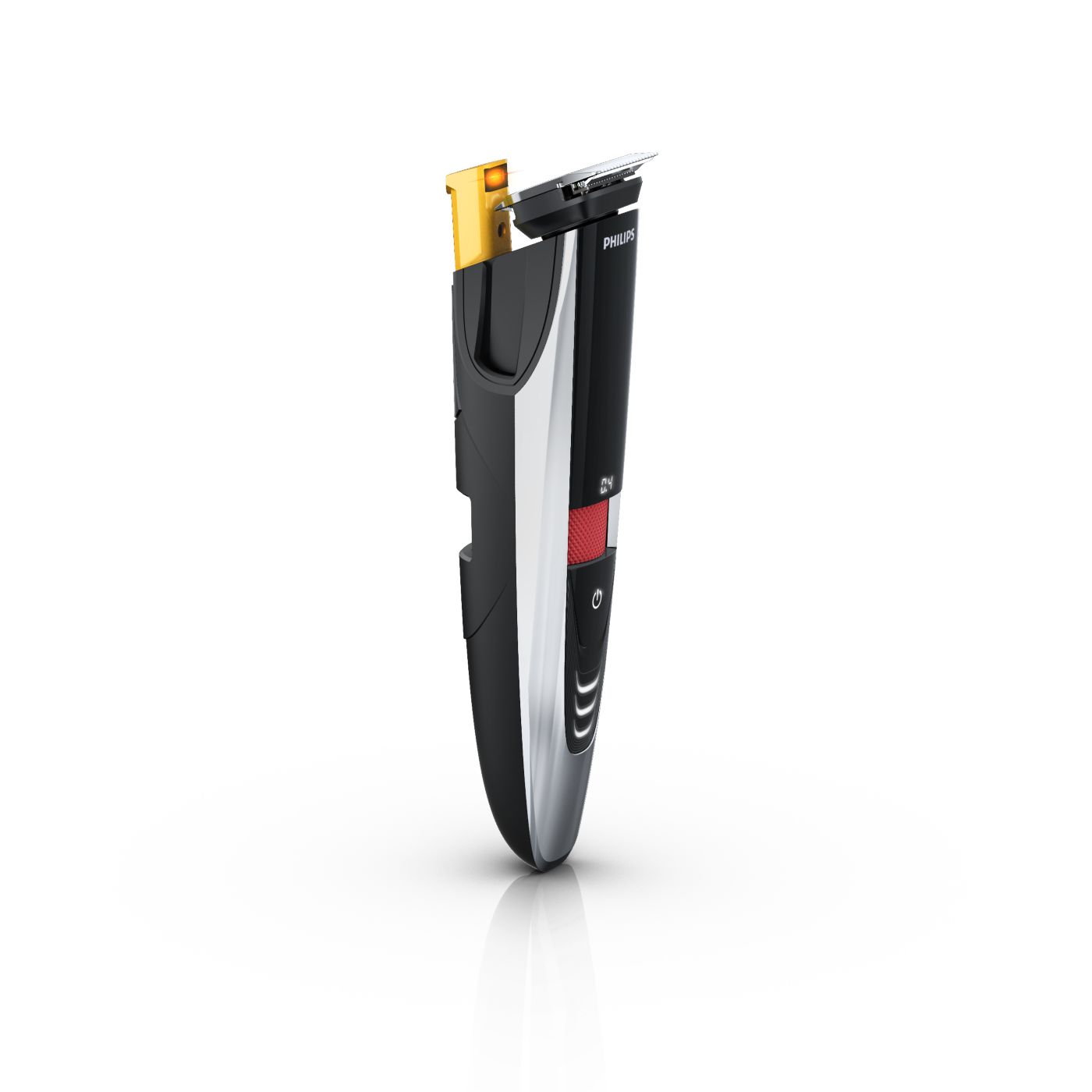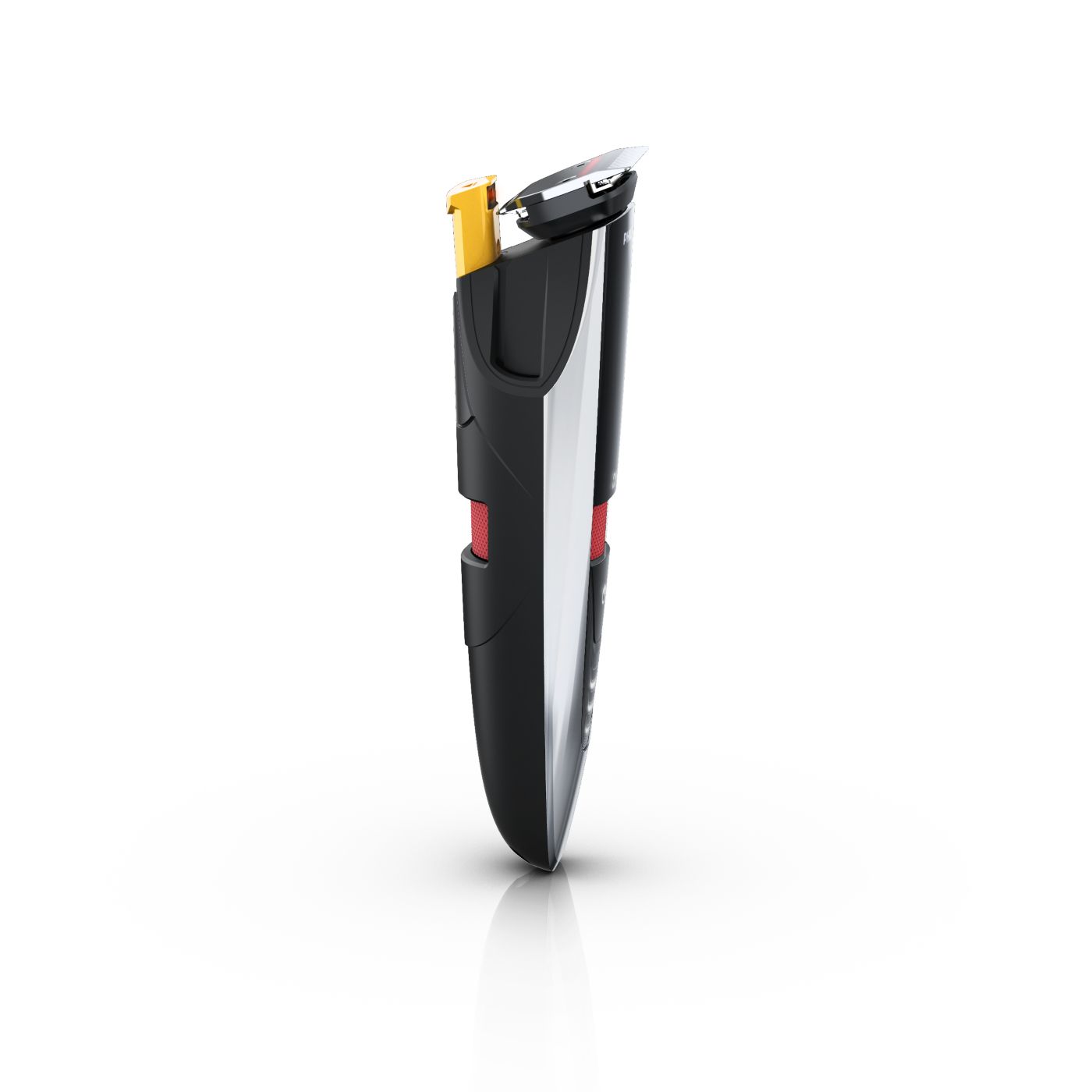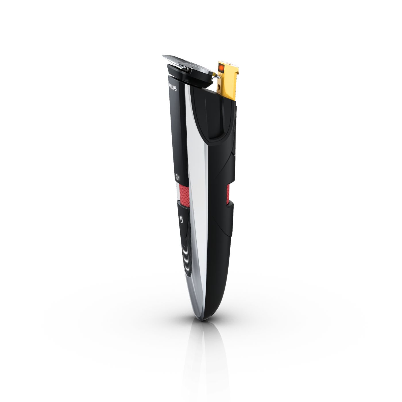 The dual-sided reversible trimmer gives you the versatility to create your unique look. On one side, the 1 17/64" (32-mm) high-performance trimmer cuts very close while protecting your skin. On the other side, the 5/8" (15-mm) precision trimmer creates a detailed look, even in those hard-to-reach areas like under the nose and around the mouth. The trimmer's small size and angled design make it easy to see what you are doing for accurate fine lines and details.
