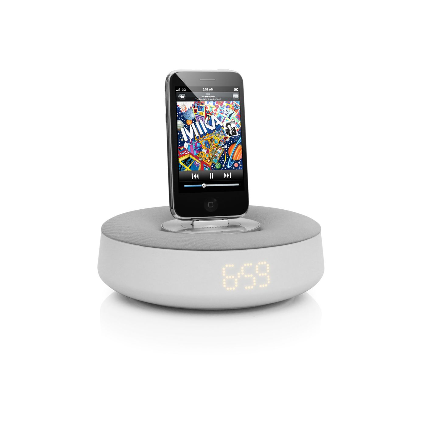 Delivering surprisingly full and rich sound, this compact docking speaker automatically synchronises with your iPhone/iPod's clock settings. Enjoy an adjustable night light and the convenience of charging a second mobile device via USB.