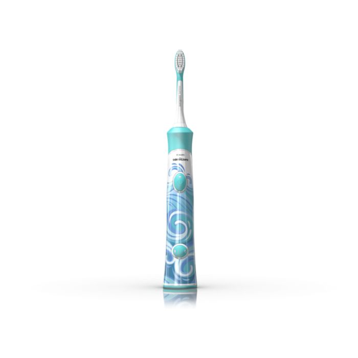 This Philips Sonicare electric toothbrush has two brush head sizes that are specifically designed to gently clean and protect teeth as they grow