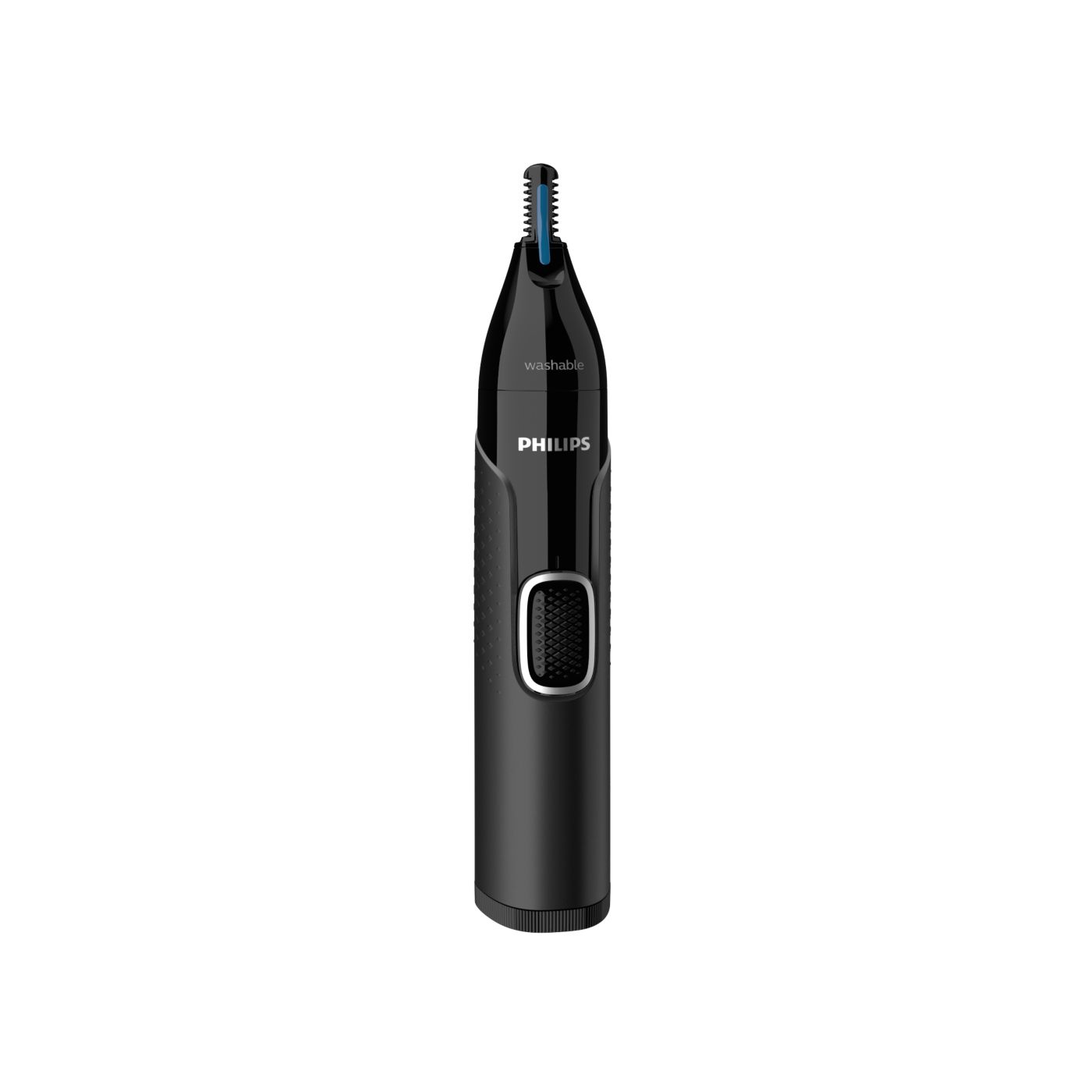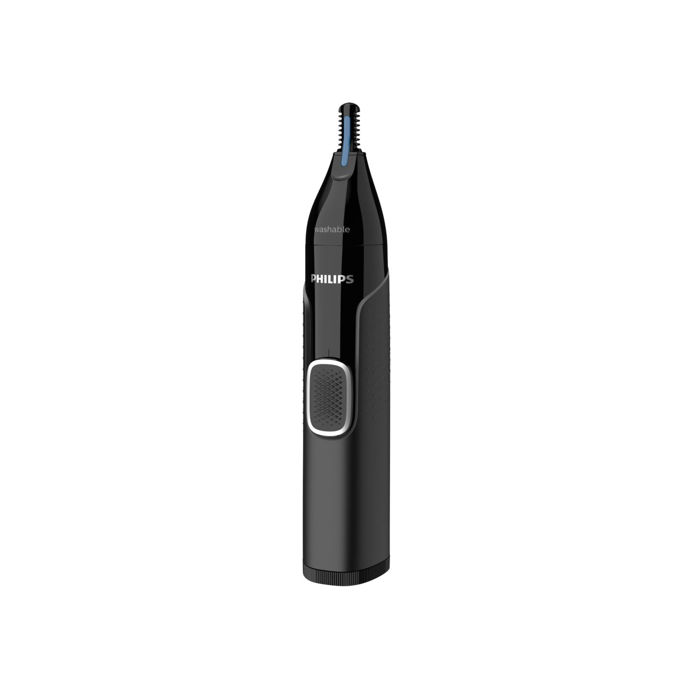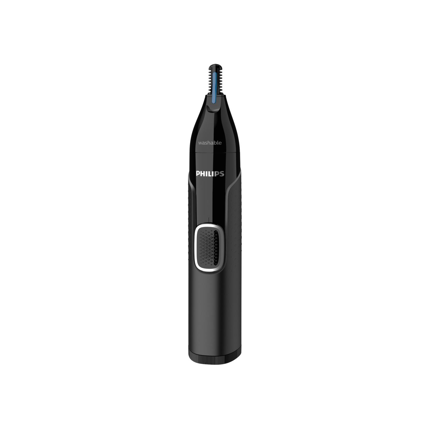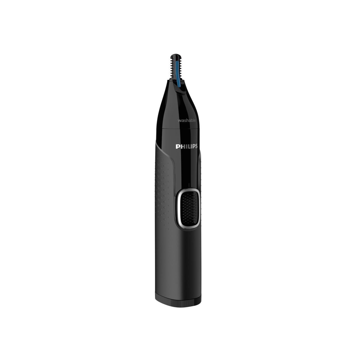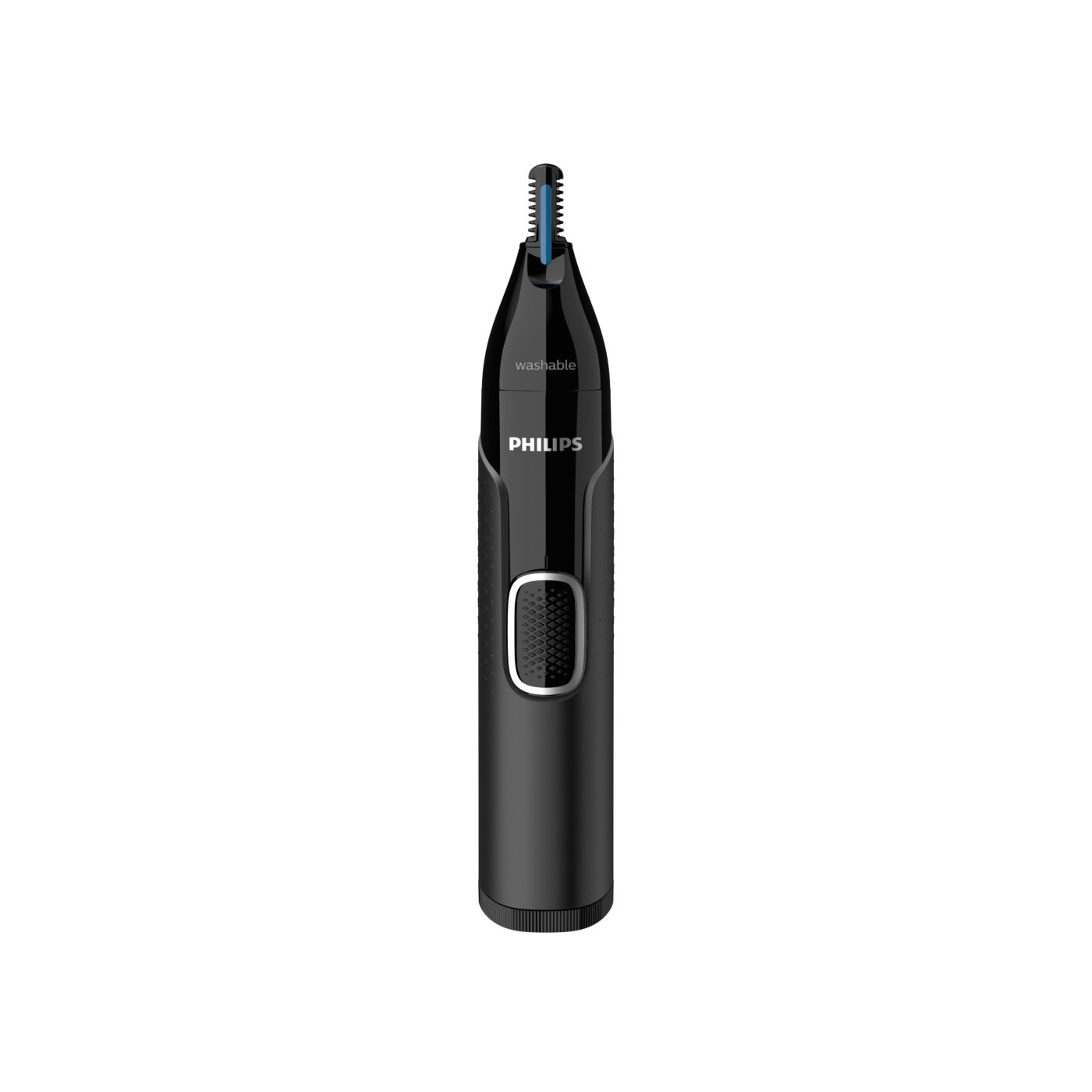 A nose, ear and eyebrow trimmer engineered for safety and comfort, the Protective Guard System covers the blades to ensure they don't make direct skin contact. It's also made to minimise missed hairs, pulling or tugging.