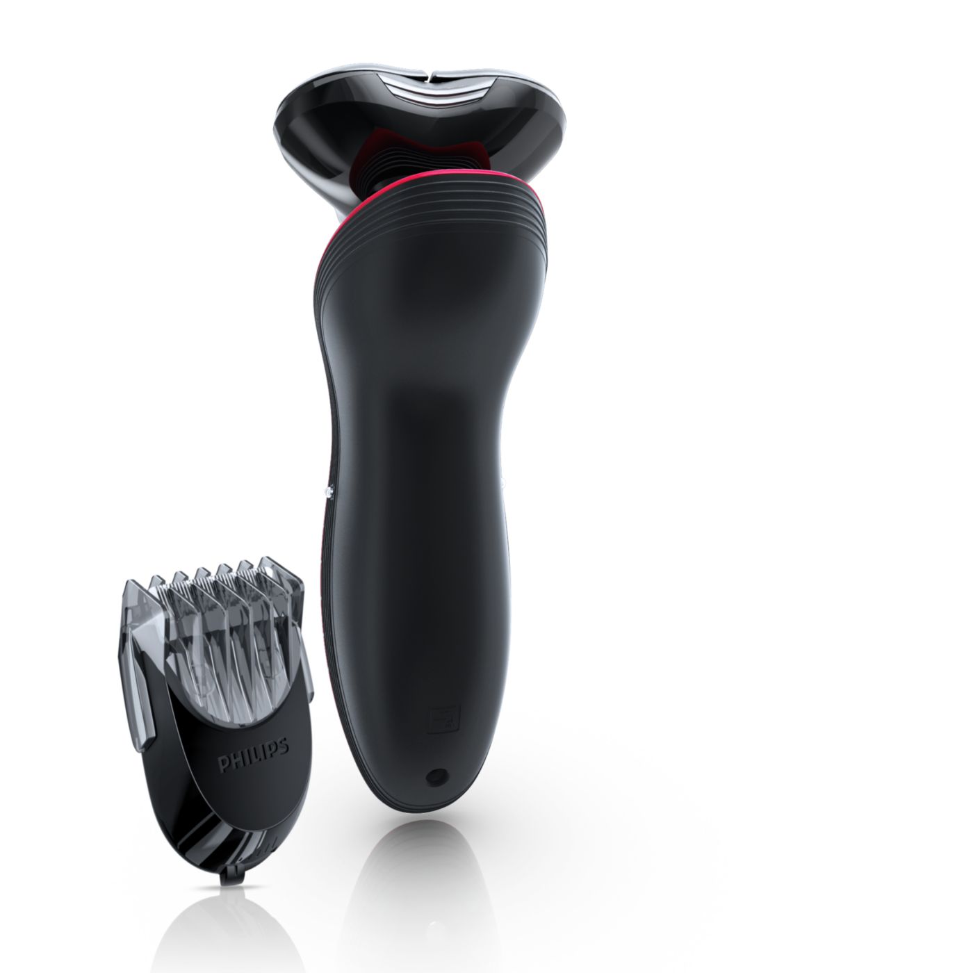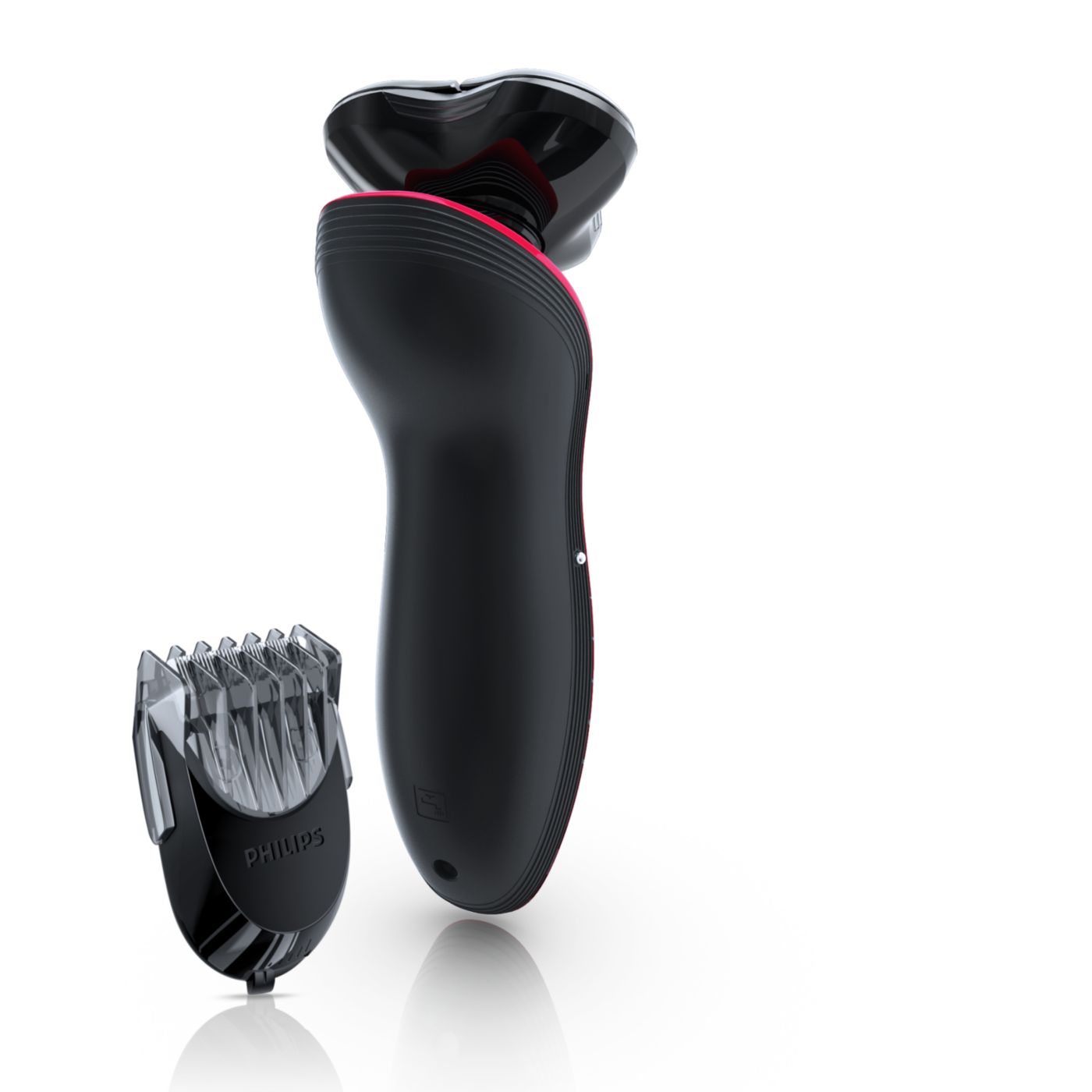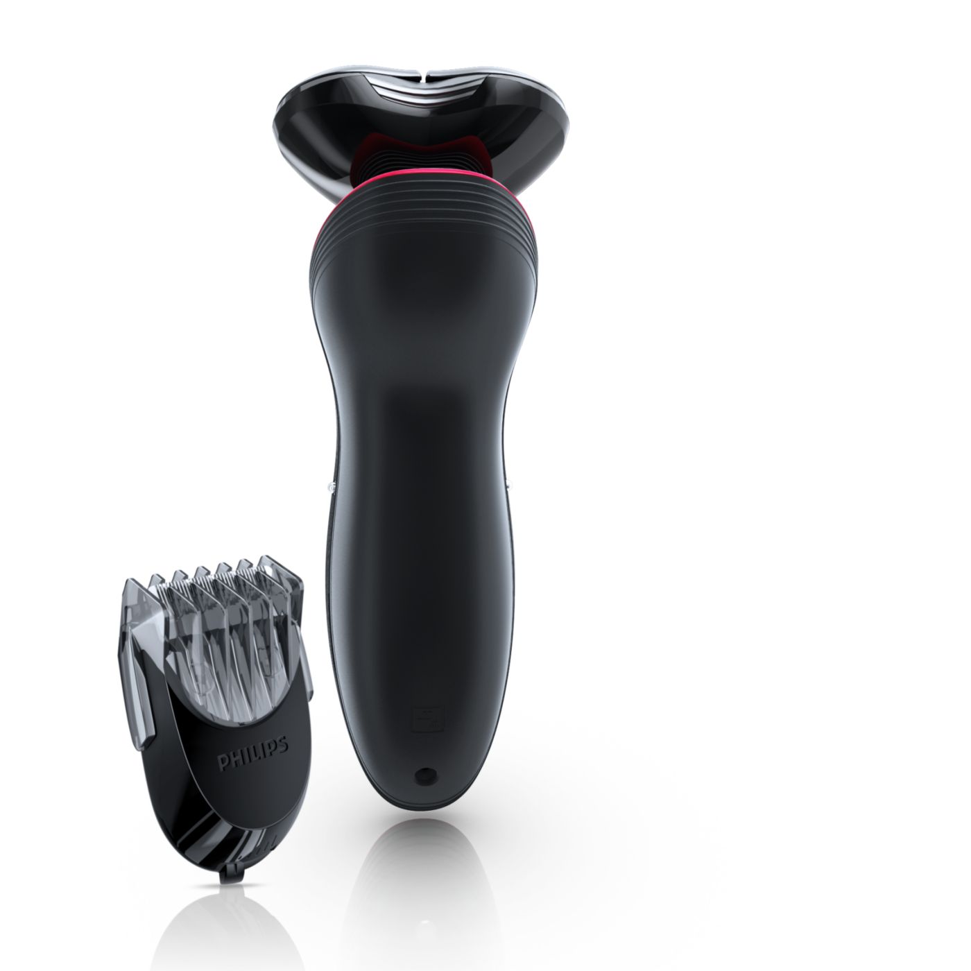 The dual-blade system built into the Philips electric shaver lifts hairs to cut comfortably below skin level for a closer shave.