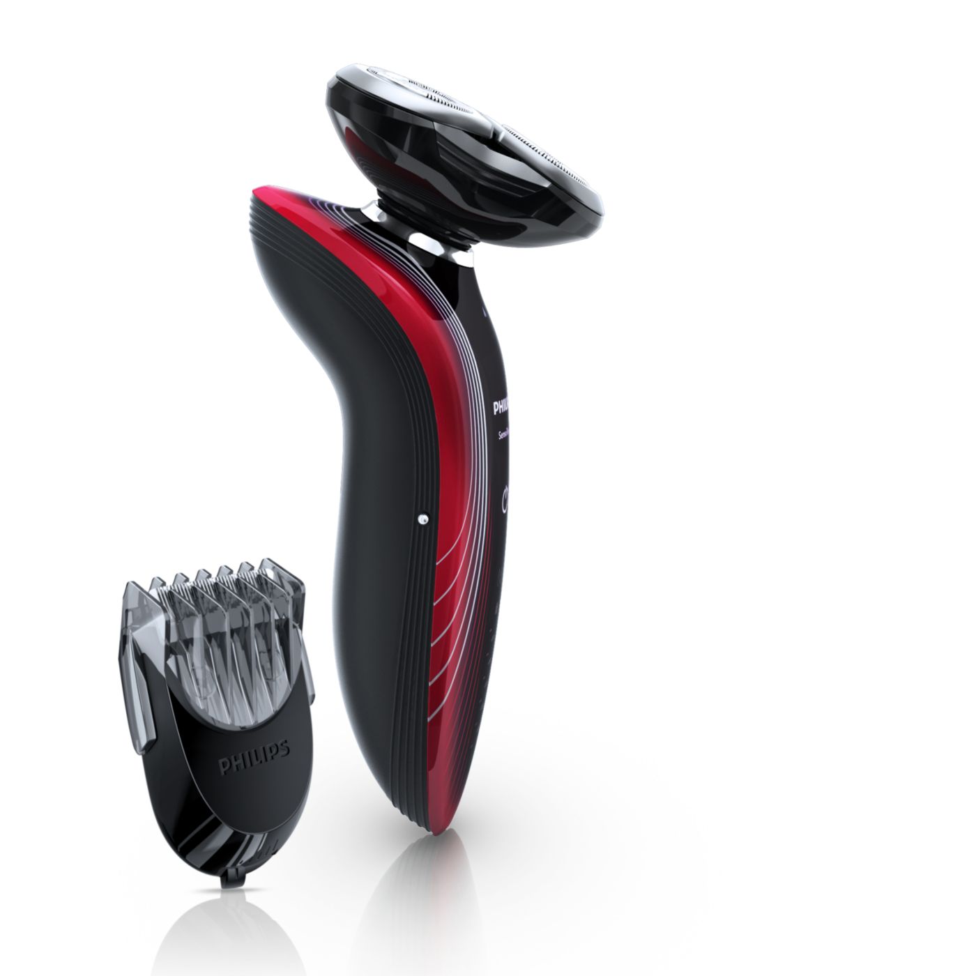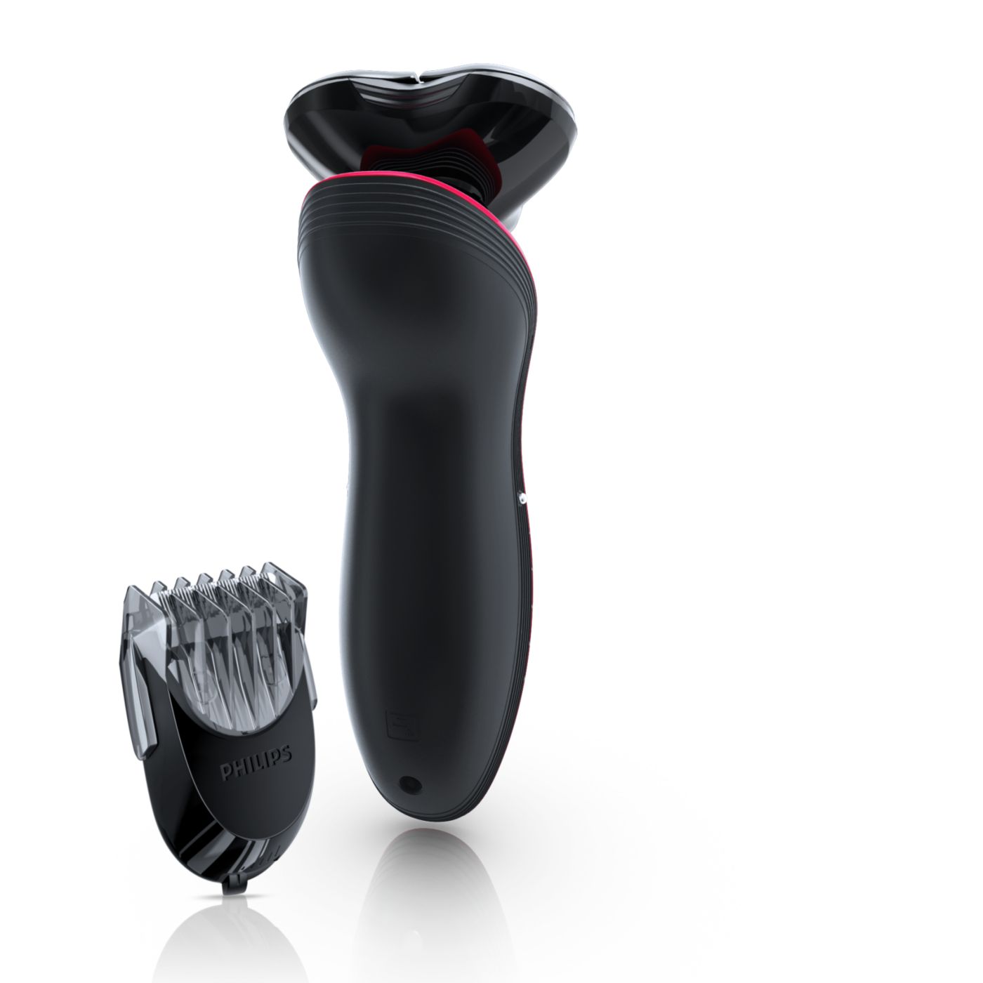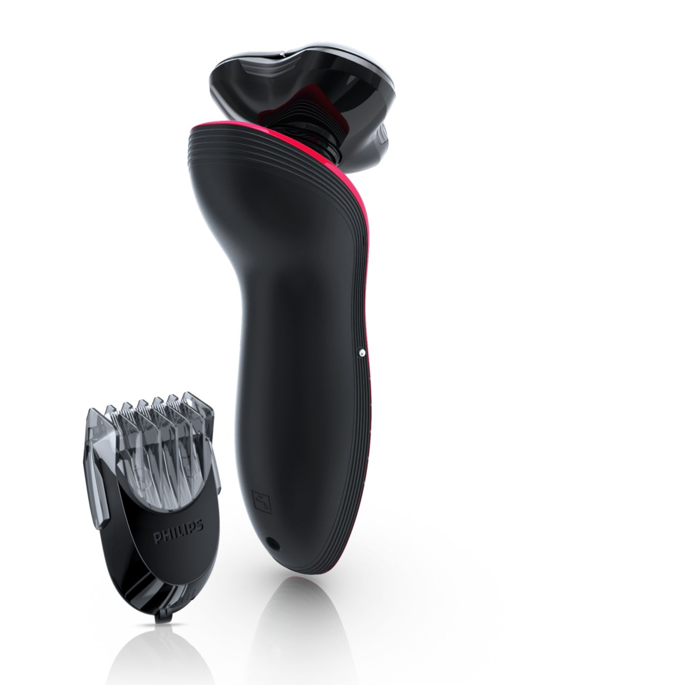 The dual-blade system built into the Philips electric shaver lifts hairs to cut comfortably below skin level for a closer shave.