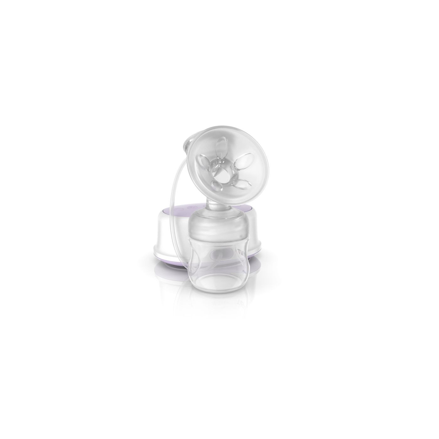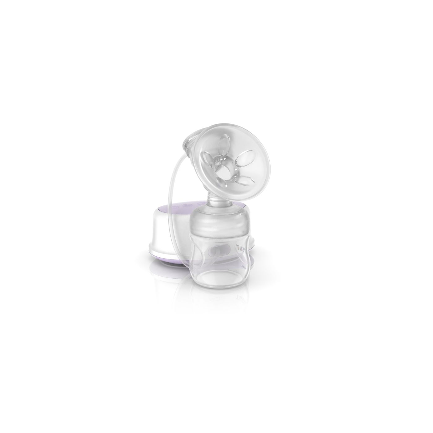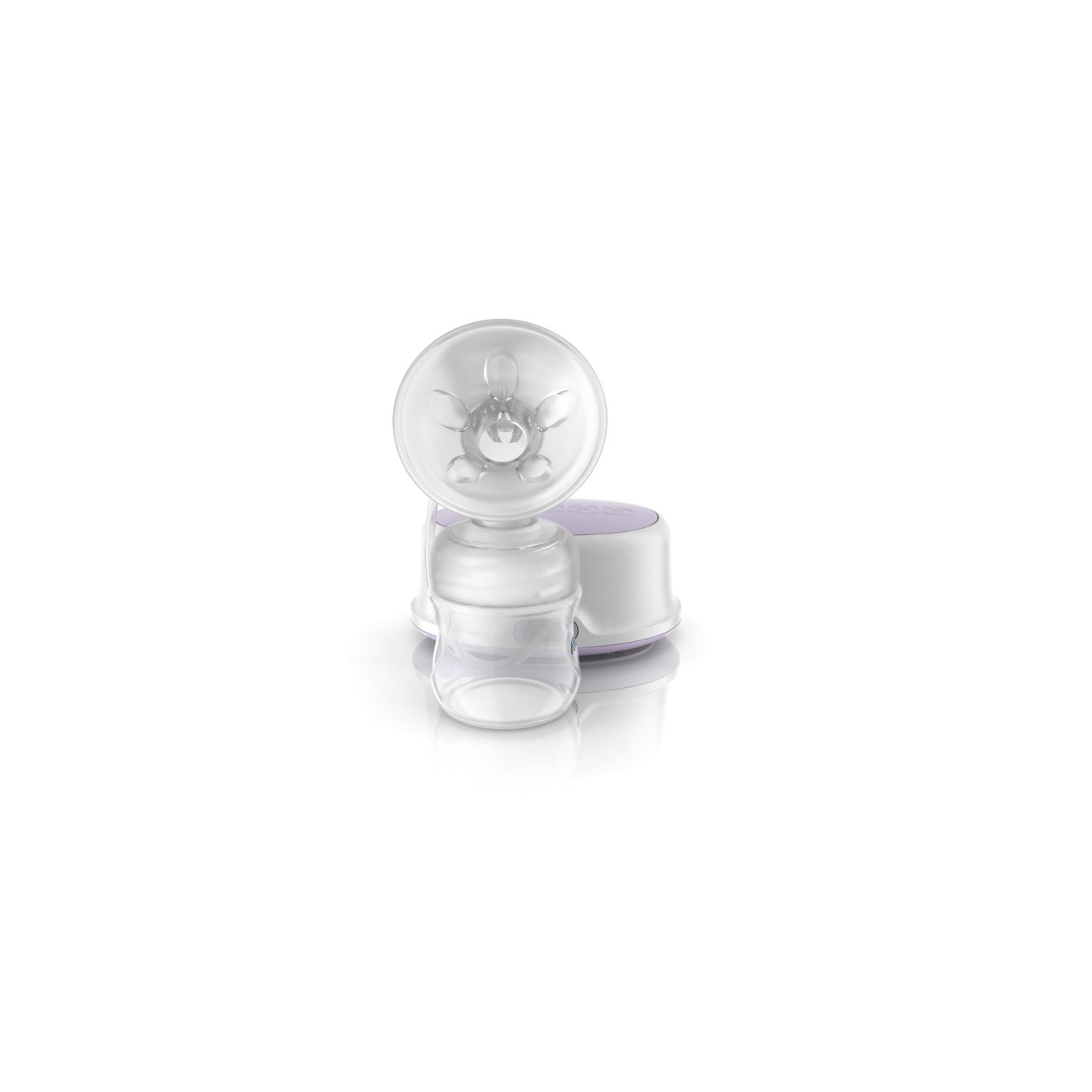 The breast pump has a unique design, so your milk flows directly from your breast into the bottle, even when you are sitting up straight. This means that you can sit more comfortably when pumping: no need for you to lean forward to make sure all your milk ends up in the bottle. Sitting comfortably and being relaxed when pumping, naturally helps your milk to flow more easily.