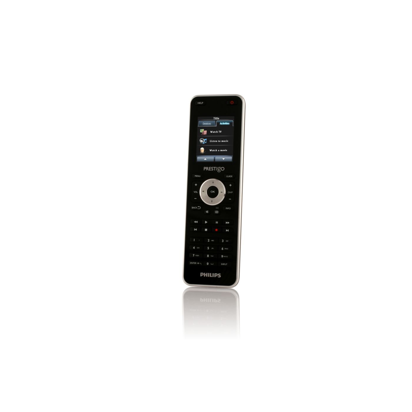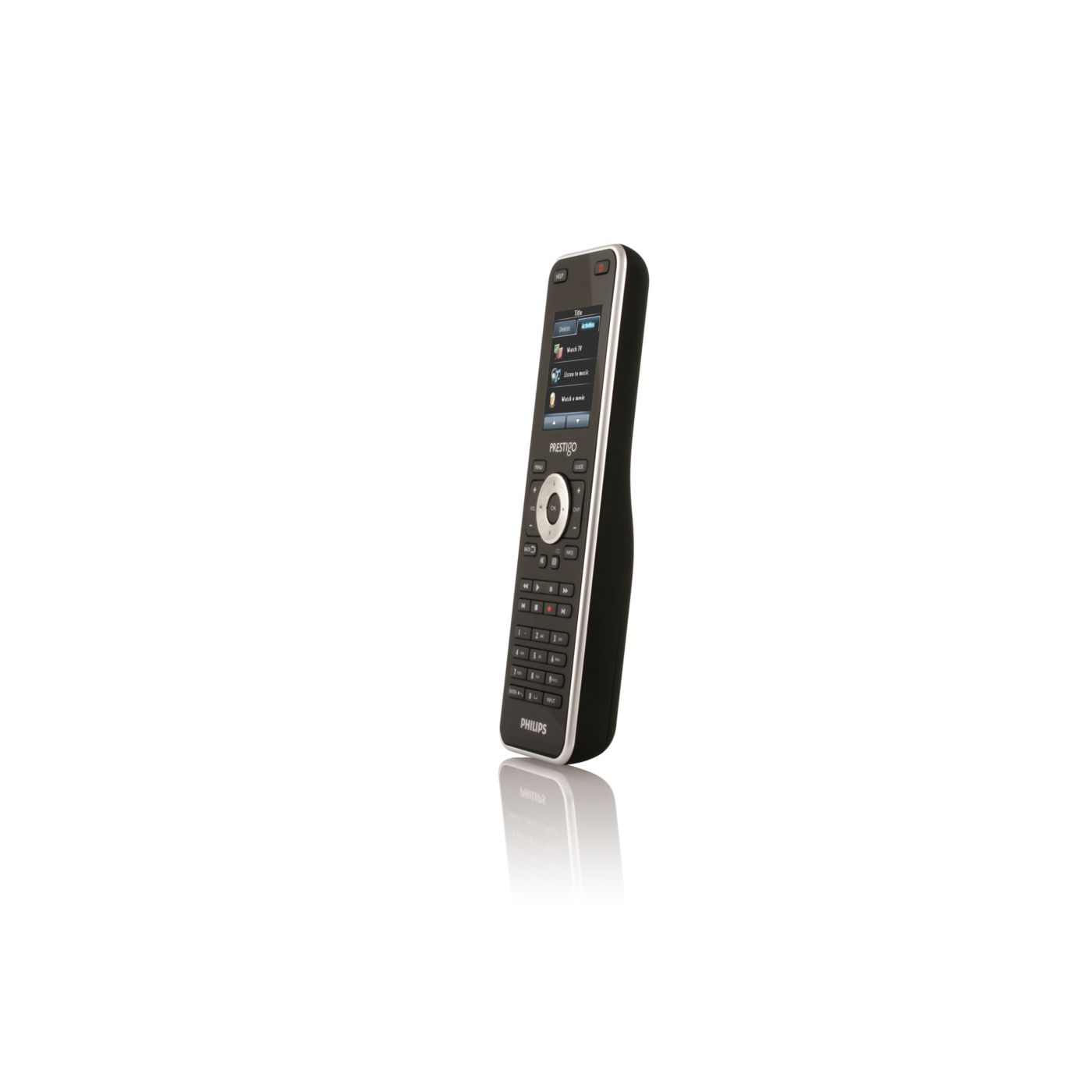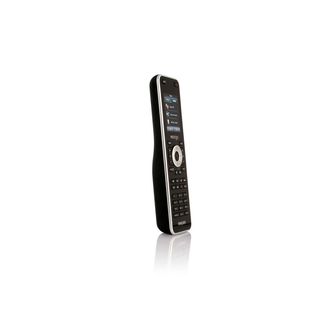 Start your home entertainment activities with one touch of a button instead of controlling each individual device in separate steps. Simply press the activity button like 'Watch a movie' and the Prestigo will automatically switch on the different devices, such as the TV, DVD player and Home theatre system, to watch a movie.